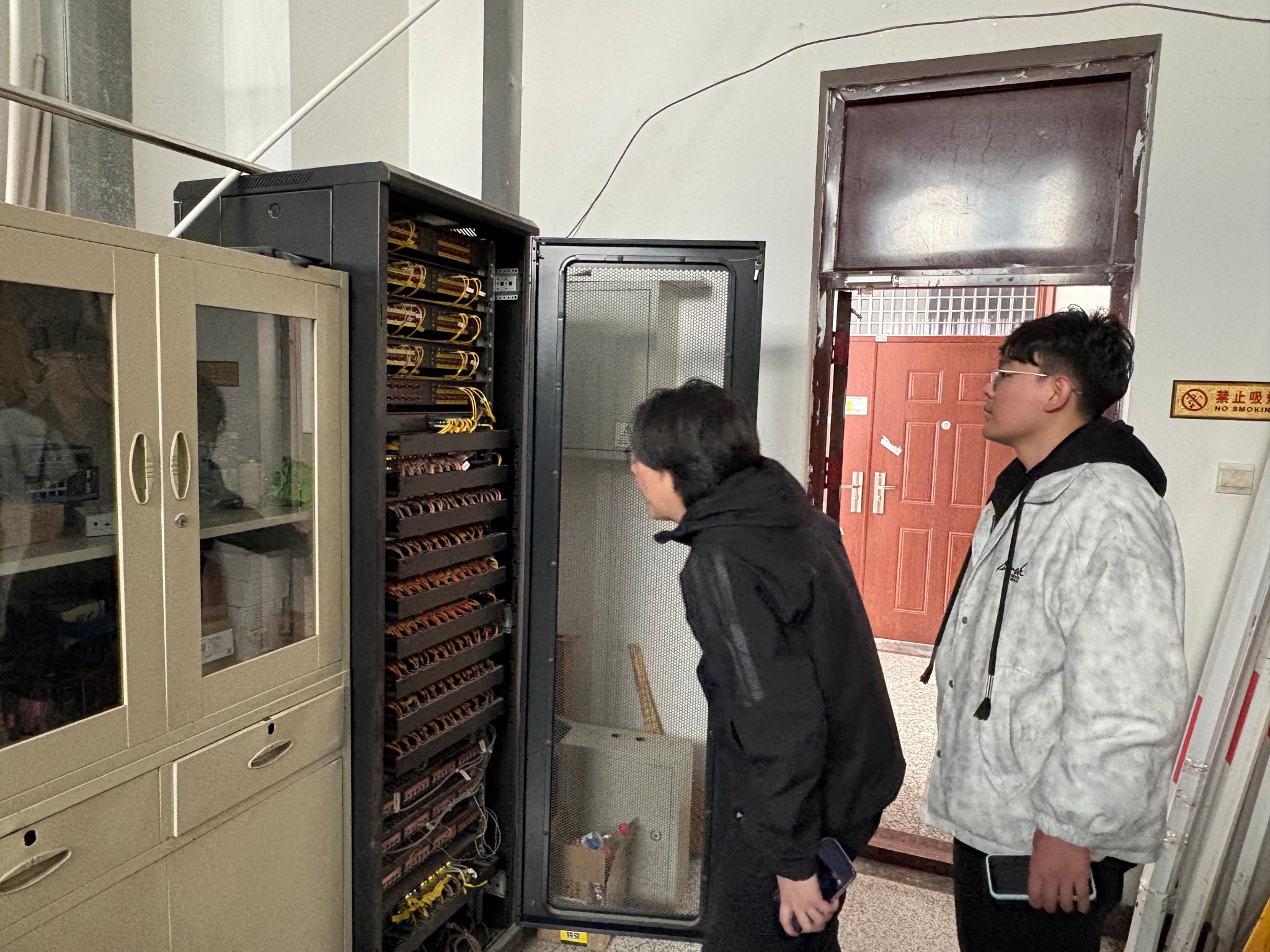 网数中心对本次巡检工作高度重视,会上首先明确了新学期校园弱电安全管理的总体要求,对本次巡检的范围、标准和整改时限作出了明确部署。会后,全体参会人员共同前往学生宿舍区域开展联合现场排查,对各运营单位铺设的弱电线路、部署的通信设备及配套箱体进行逐一核验,现场排查出部分线路布设不规范、闲置废弃设备未及时清理、设备箱体维护不到位等问题,检查组当场向各责任单位反馈问题清单,要求各单位限期完成全部问题整改,建立整改台账实现闭环管理。